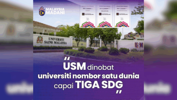 Universiti Sains Malaysia (USM) mencipta sejarah apabila dinobatkan sebagai universiti nombor satu dunia dalam tiga Matlamat Pembangunan Lestari (SDG) berdasarkan Times Higher Education (THE) Impact Rankings.
