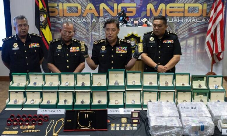 Barangan yang disita itu ialah wang tunai berjumlah RM4.4 juta, mata wang asing bernilai RM1.4 juta ,sebuah kereta jenis Range Rover SVR bernilai RM360,000.”